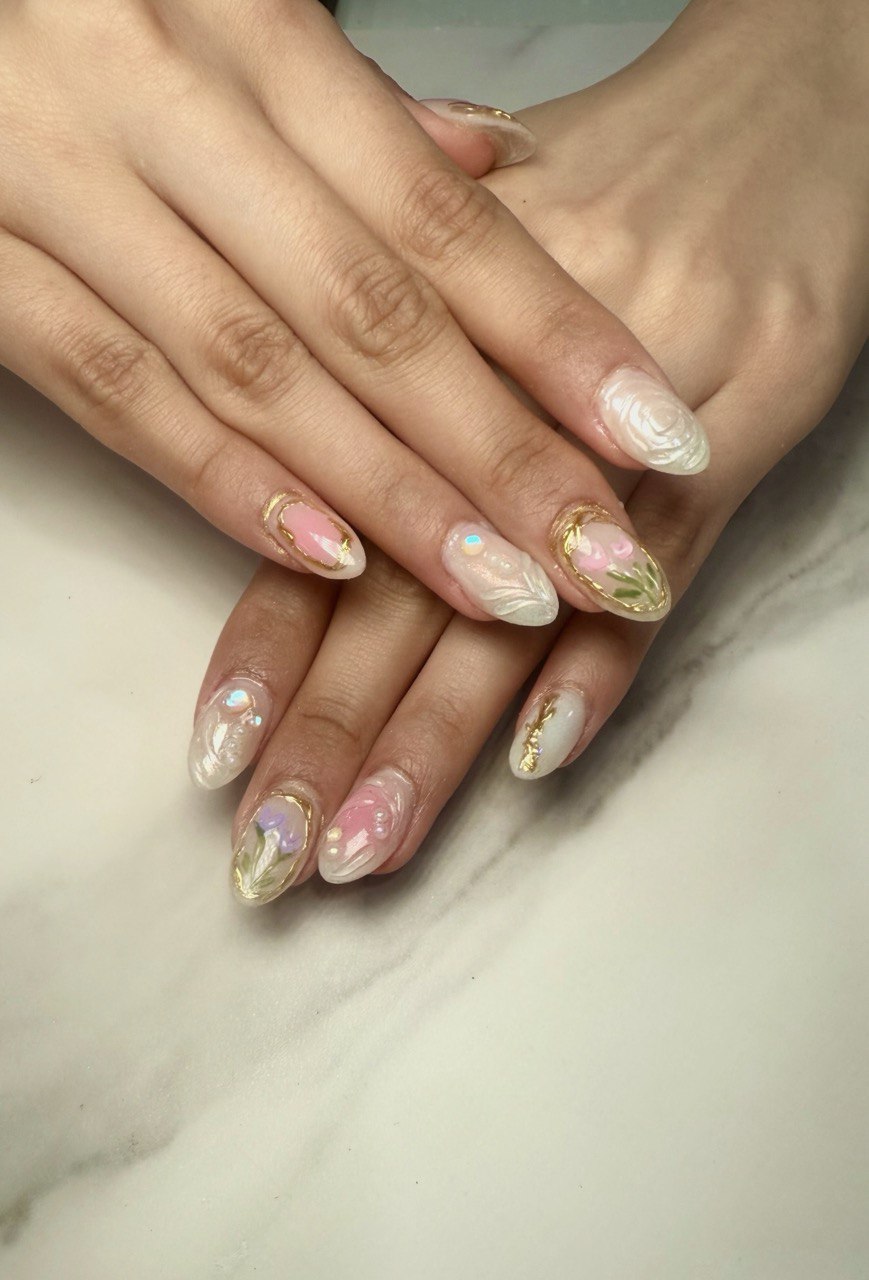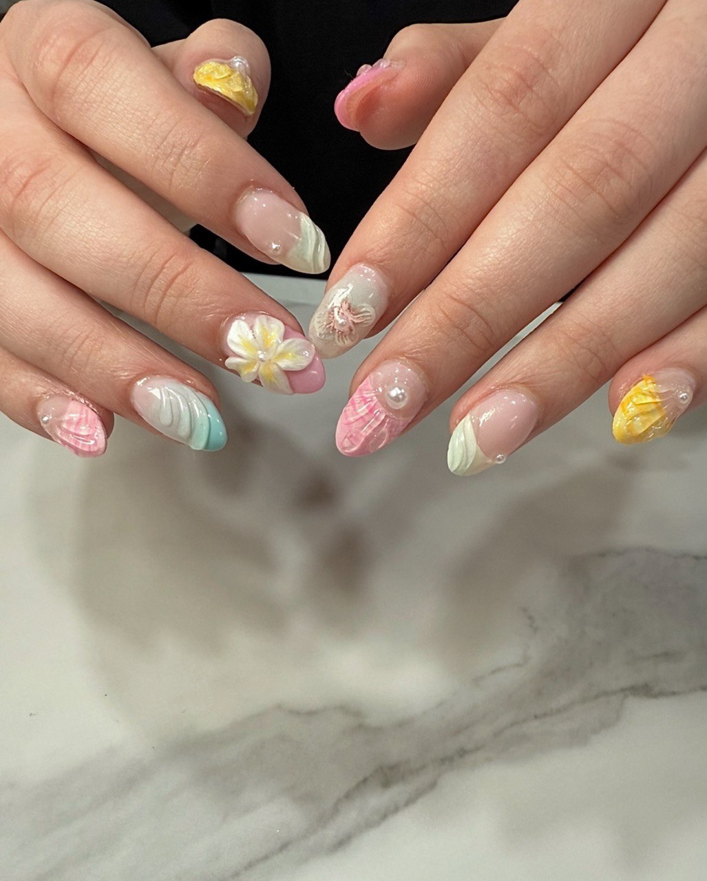 Modern manicure designs displayed inside a top nail salon Seattle.